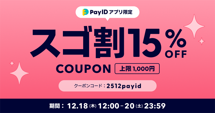 (株)BASE主催 「Pay IDアプリ限定 スゴ割」キャンペーン(12/18 12:00~12/20 23:59)のお知らせ